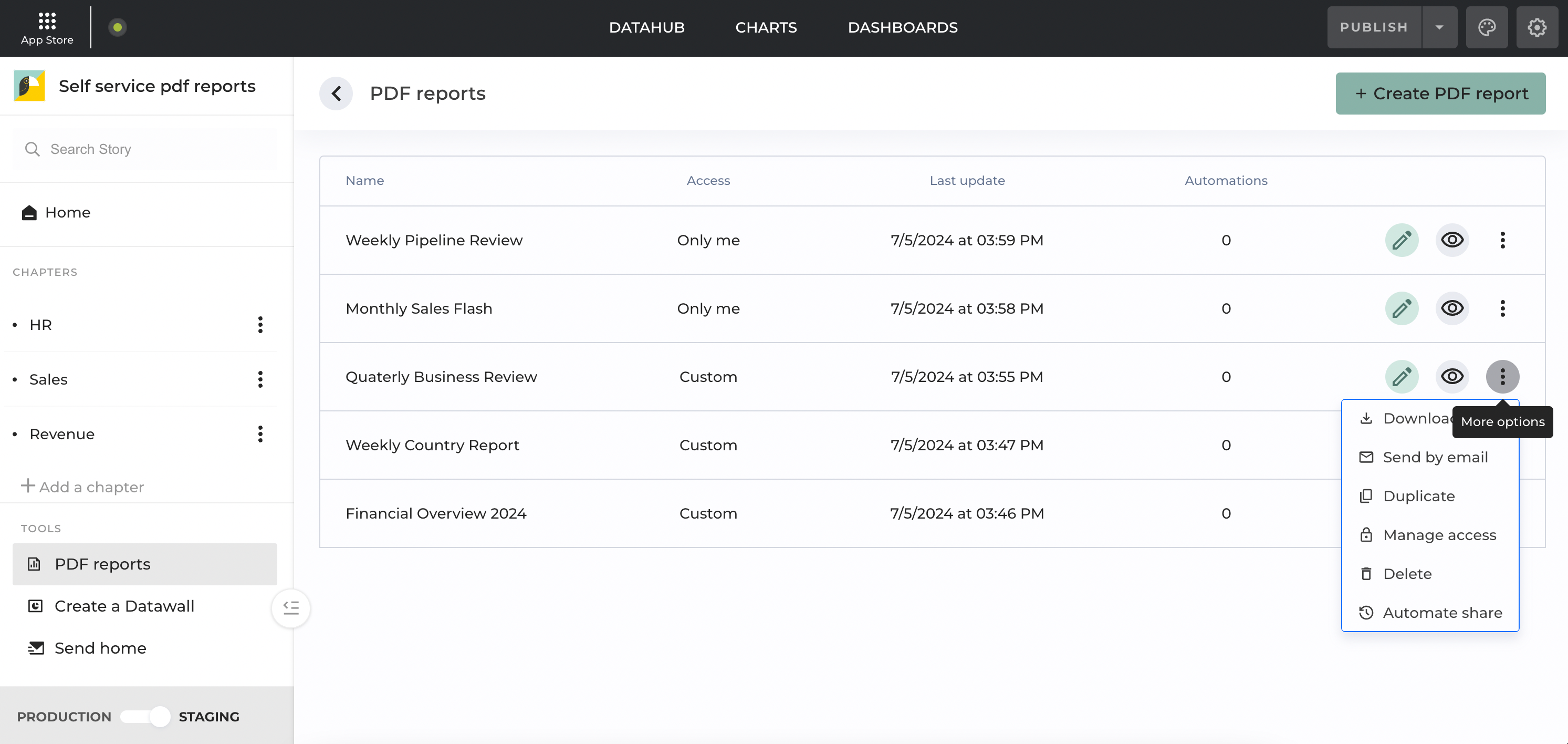 * **Easily personalize their dashboards** by selecting charts from a library or removing those they don’t need.