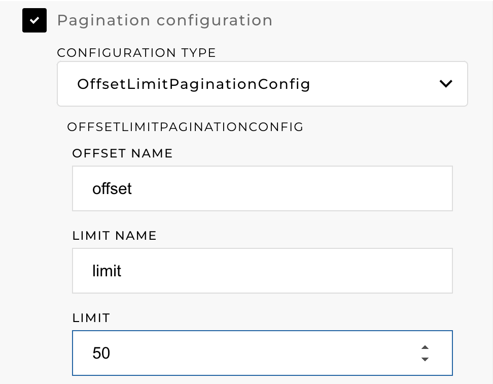 <div data-full-width="false"><figure><img src="https://1809014303-files.gitbook.io/~/files/v0/b/gitbook-x-prod.appspot.com/o/spaces%2FZxYYf1KpgarKMgMsDCrw%2Fuploads%2Fgit-blob-77efe0adcd597d020109c37929d854f255048a9b%2Fimage.png?alt=media" alt=""><figcaption><p>Pagination option in the HTTP connector form</p></figcaption></figure></div>