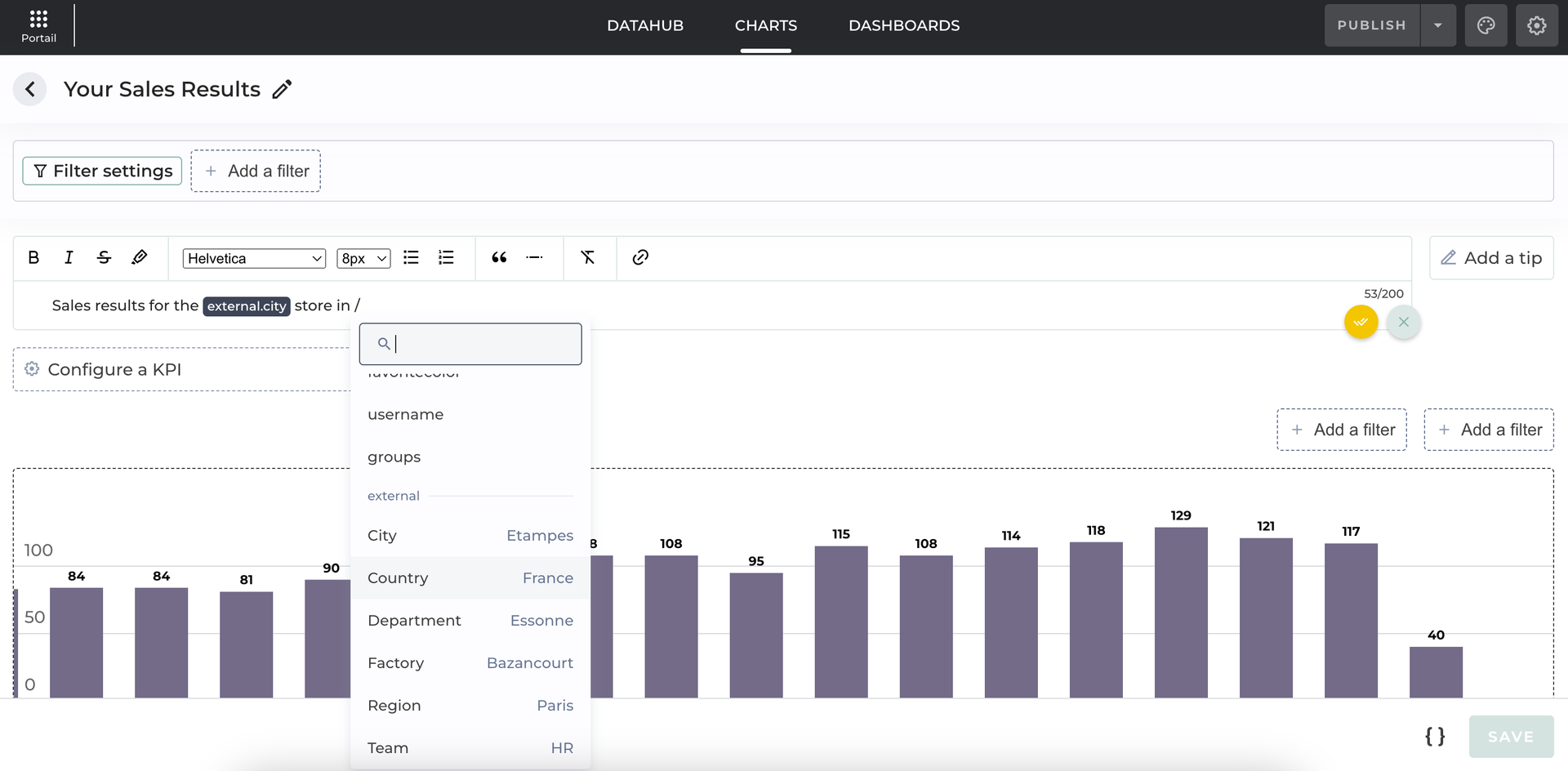To ease your app maintenance and evolutions, we have made it possible to change the filter dataset so that you can change the filter, and the application is automatically made on the datasets filtered by the filter.