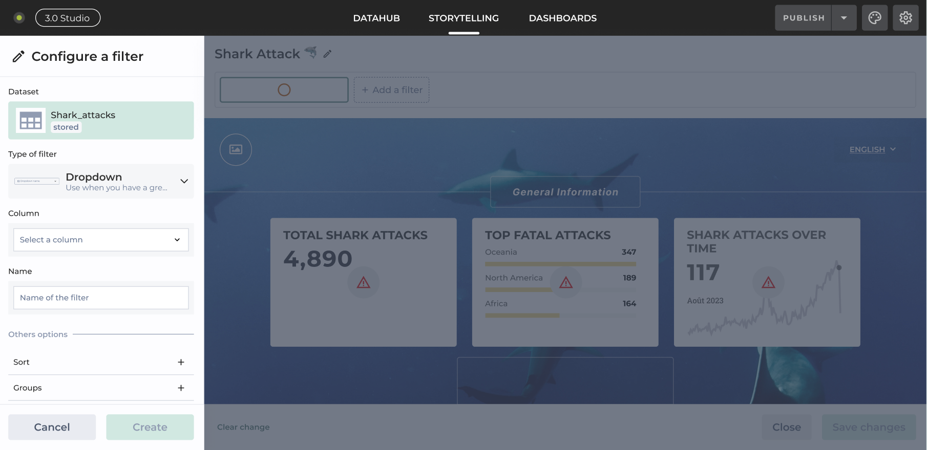We've revamped the filter creation process to align more closely with chart creation, ensuring a consistent and intuitive user experience. Simply select your dataset, choose the relevant column, give your filter a user-friendly name, and voilà!