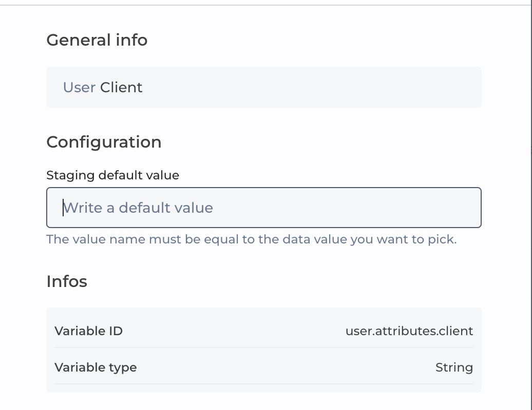 We have simplified the input field for adding a default staging value in user variables. This change makes it less confusing for app builders, as it now uses a different input field than the one for external variables.