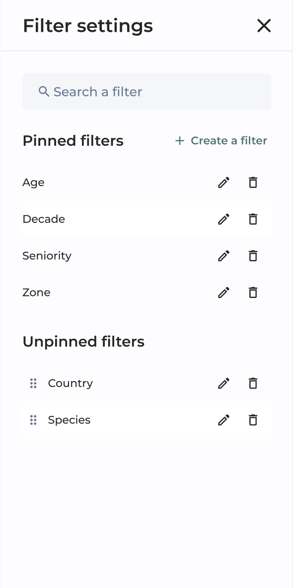 * There is a clearer icon to unpin filters to avoid confusion with the delete icon!