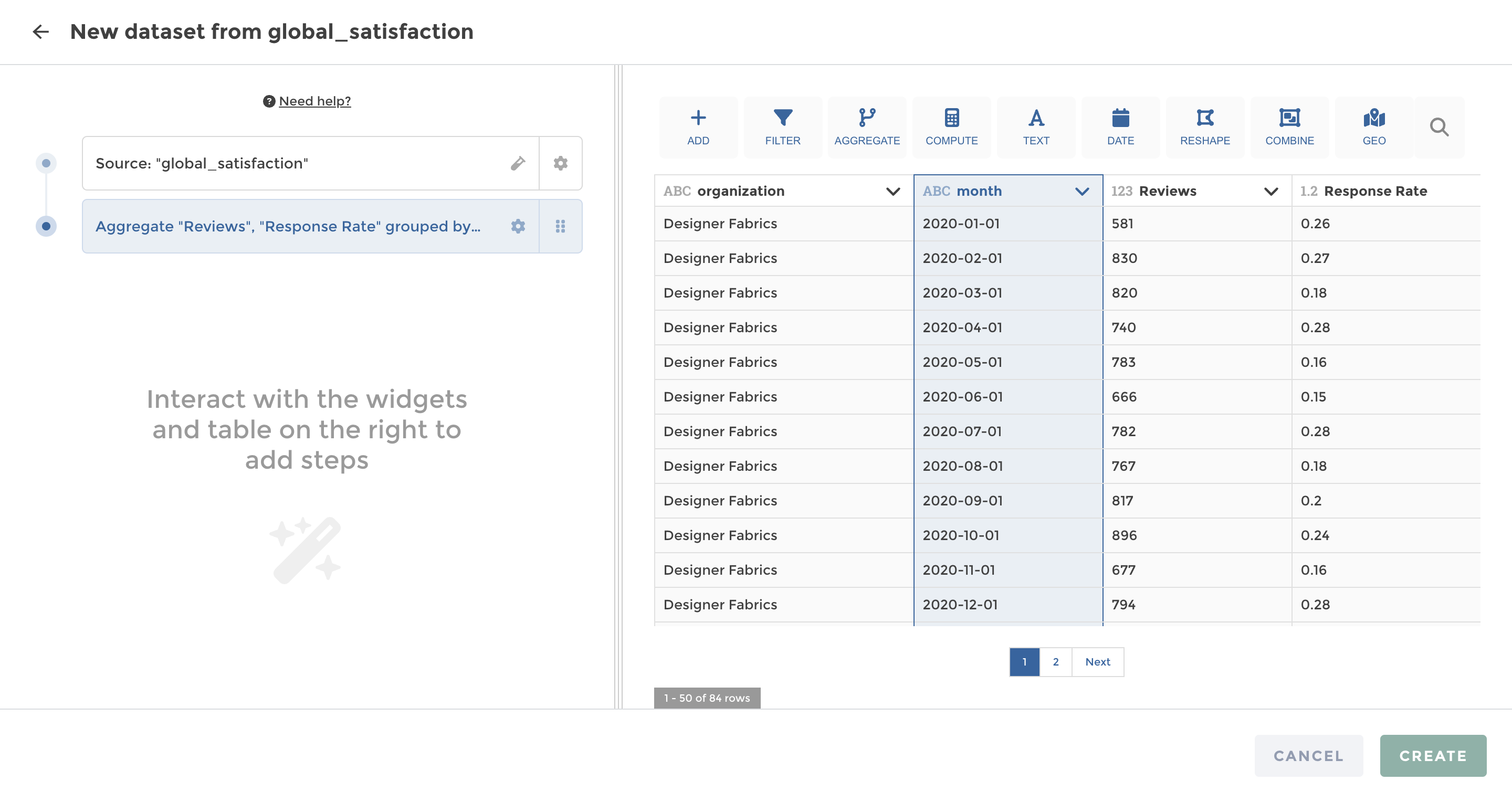 2. After clicking on `Create a new dataset from this one`, you will have access to YouPrep™ (know more about YouPrep [here](https://docs-v3.toucantoco.com/data-management-in-datahub/datasets-in-toucan/preparing-data/overview-of-youprep-tm))