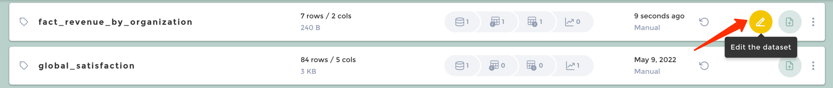 1. Click on the "edit" button of the dataset you want to edit.