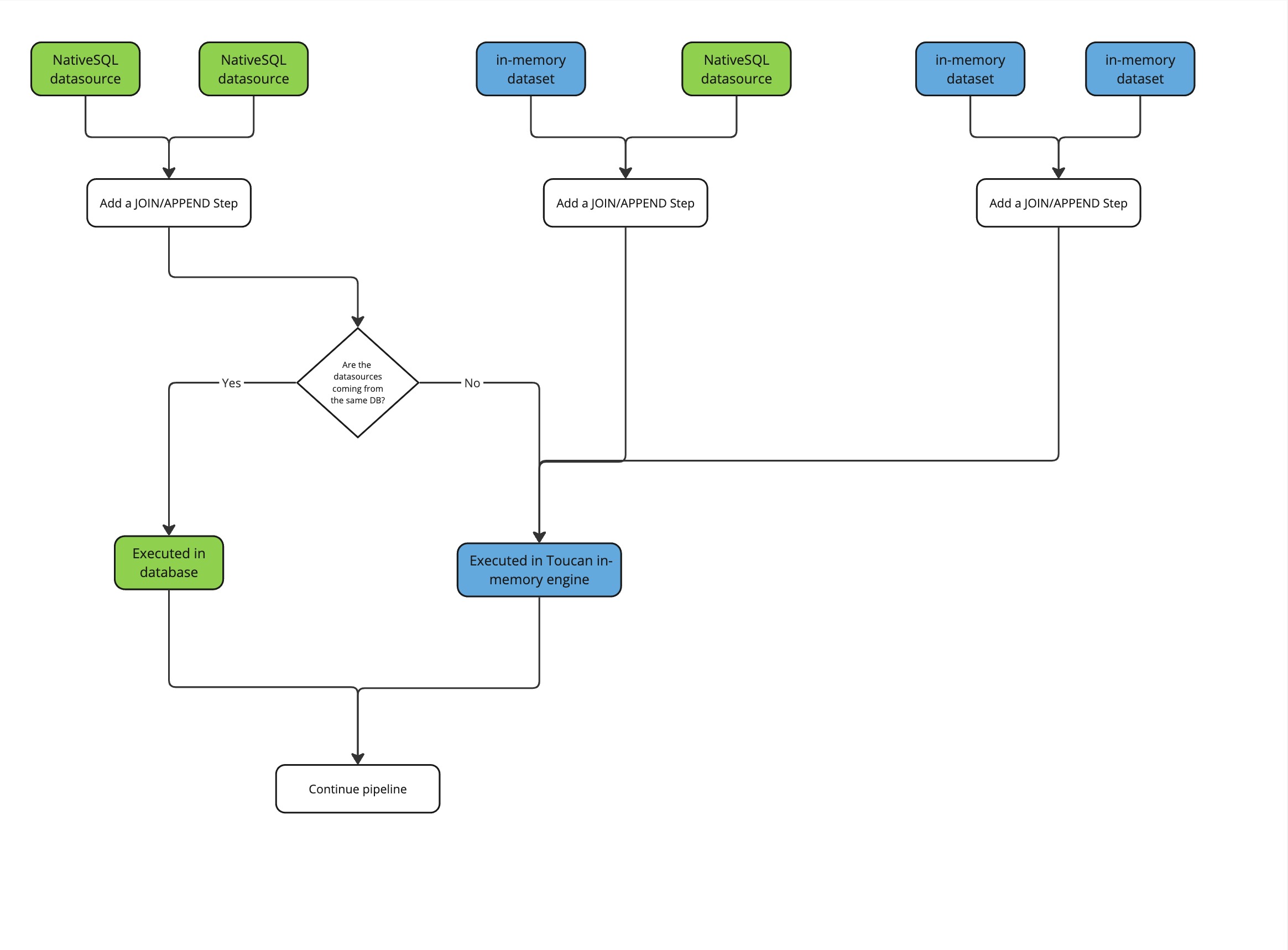 <figure><img src="https://1809014303-files.gitbook.io/~/files/v0/b/gitbook-x-prod.appspot.com/o/spaces%2FZxYYf1KpgarKMgMsDCrw%2Fuploads%2Fgit-blob-6e1b01aafa5f62ce3dcb3e69a5a9c71fff54c8b6%2FHybrid%20pipeline%20-%20Join_append%20step.jpg?alt=media" alt=""><figcaption><p>JOIN/APPEND decision process for execution</p></figcaption></figure>