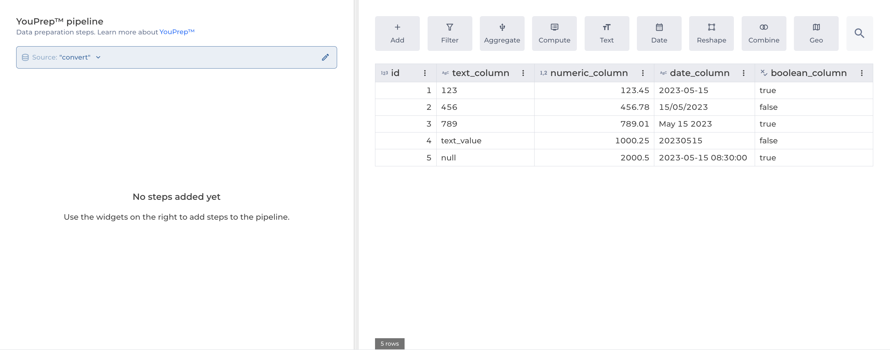 The Convert columns data types allows to cast column data types.