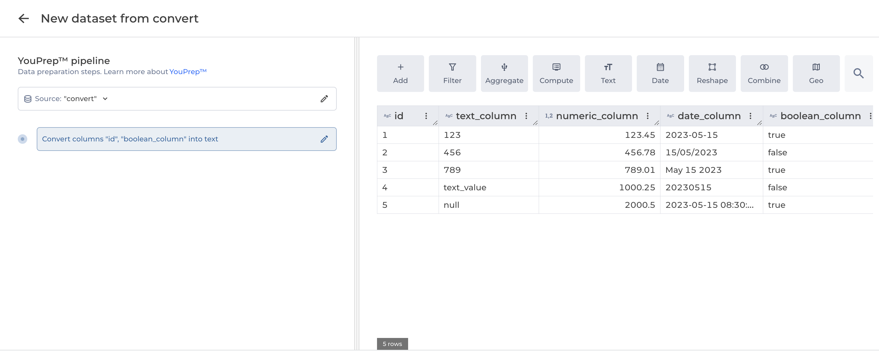 To data typetype(string): the data type to convert into, either integer, float, text, date or boolean