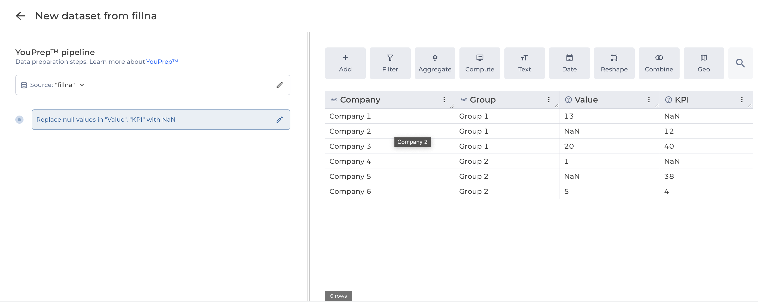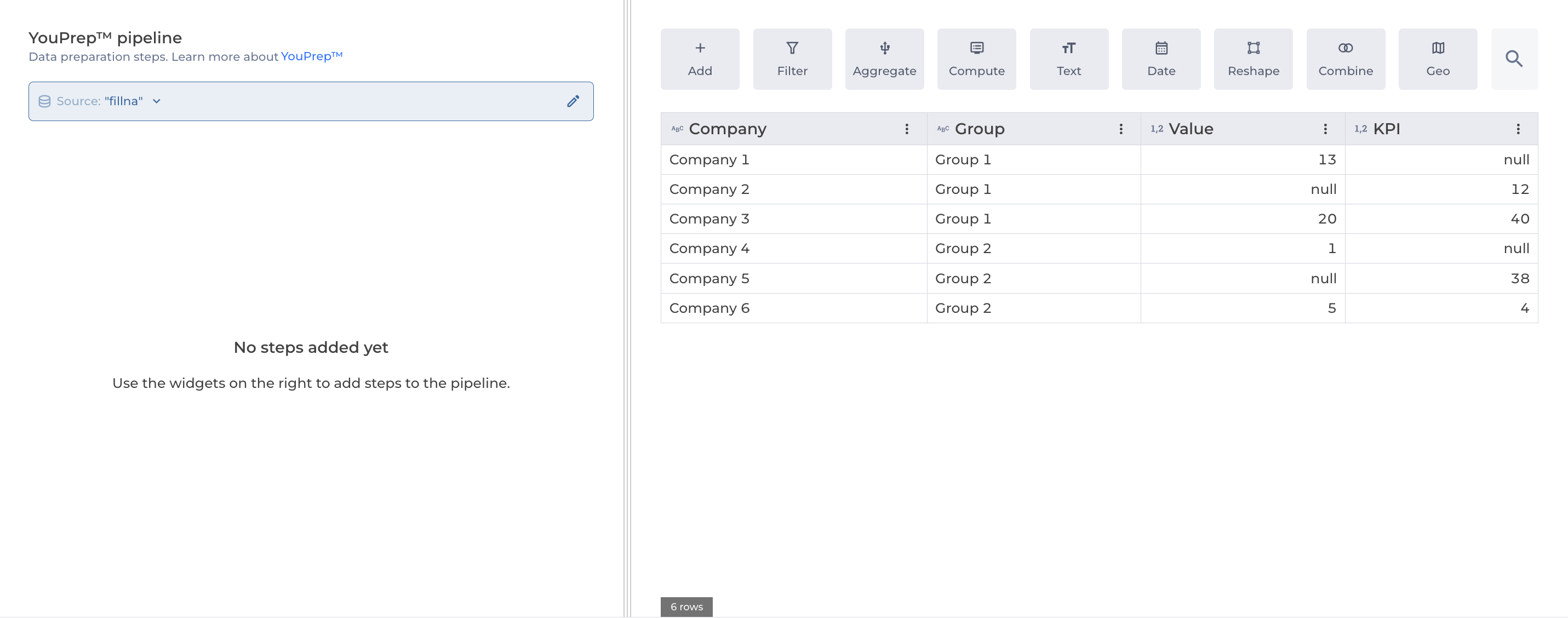 The fill null values step allows to fill null values in specified columns with a value of your choice.