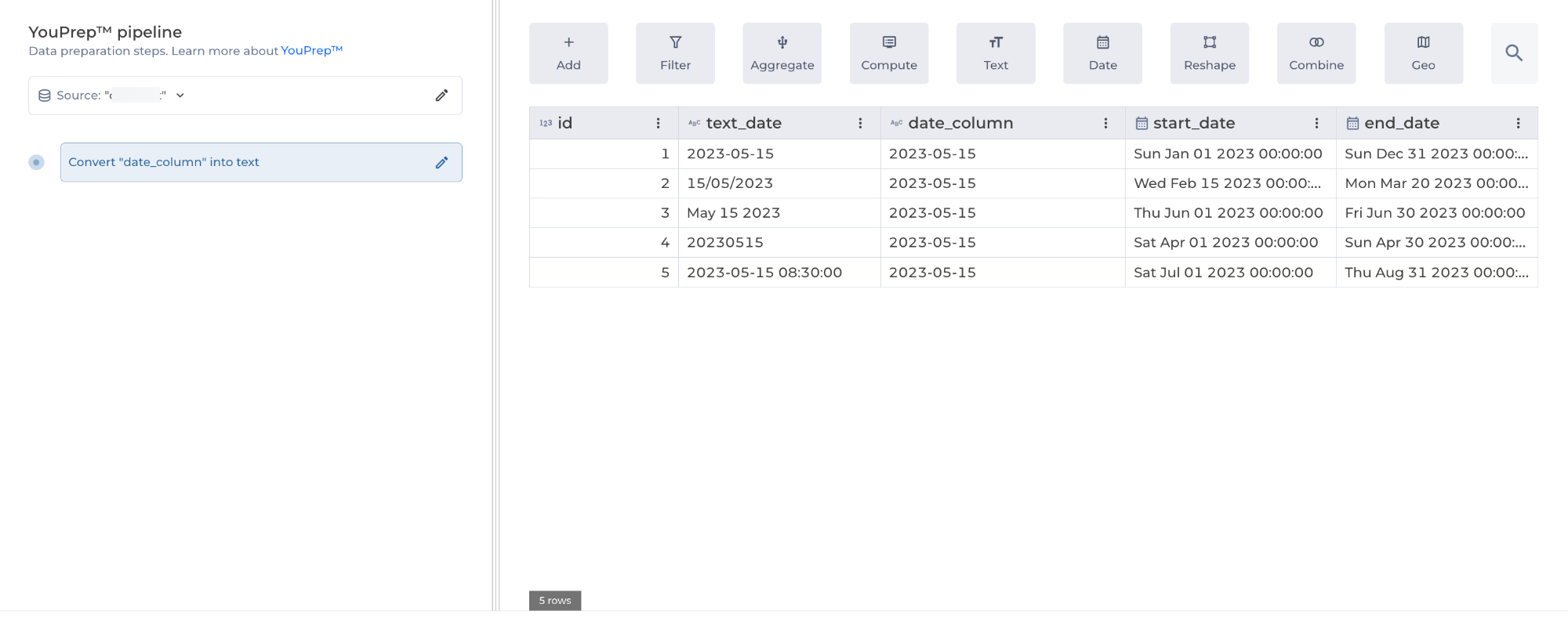 * `Column to convert` **column(string)\***: the date column to be converted to text
