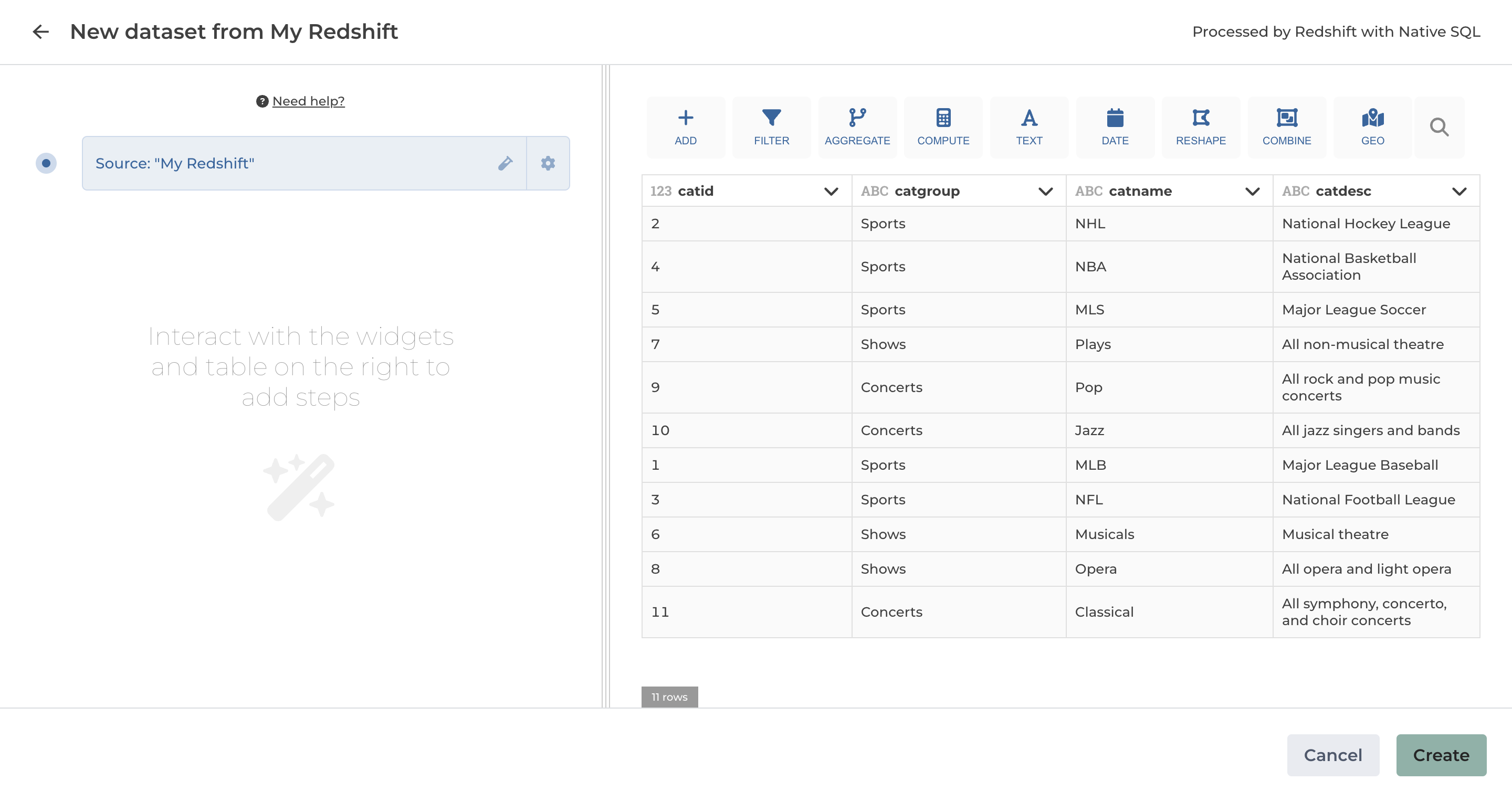5. Save your new dataset by clicking on the button "Create" (at the bottom).