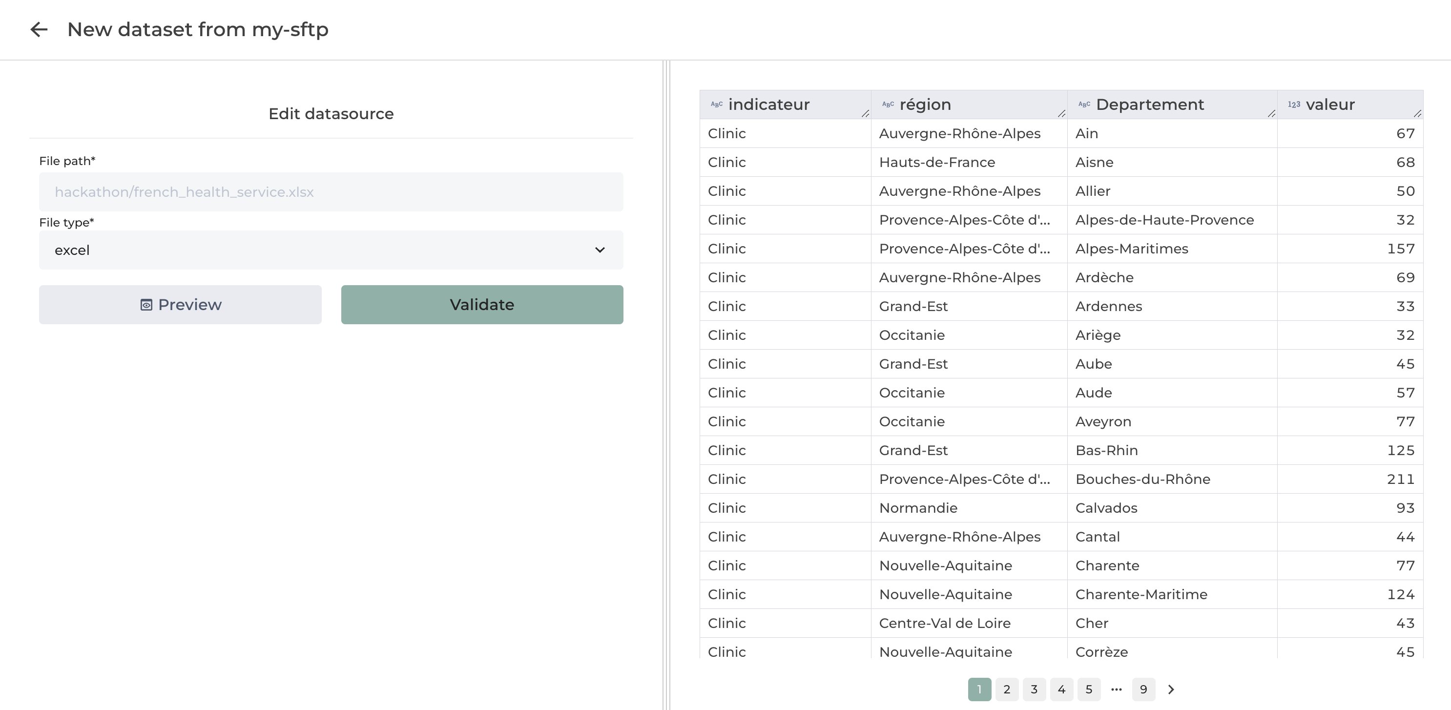 Once the configuration is complete, you can click on `Preview` or `Validate` to create a dataset from this file.
