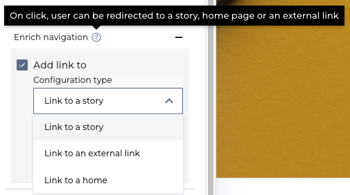 You can configure a simple `linkTo` directly from the Smart Editor, in the **Enrich Navigation menu**.