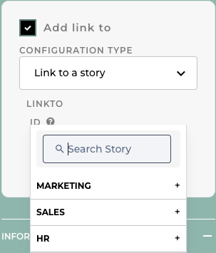 <figure><img src="https://1809014303-files.gitbook.io/~/files/v0/b/gitbook-x-prod.appspot.com/o/spaces%2FZxYYf1KpgarKMgMsDCrw%2Fuploads%2Fgit-blob-fc0e04ea4040235db2a31f3e8be0cde075163703%2FScreenshot%202023-09-26%20at%2014.58.40.png?alt=media" alt=""><figcaption><p>select your story to <code>linkTo</code></p></figcaption></figure>