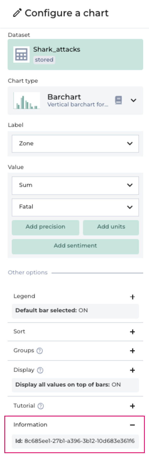 In the " Information " section, you can retrieve the chart's ID inside its configuration form, inside the "Information" section.